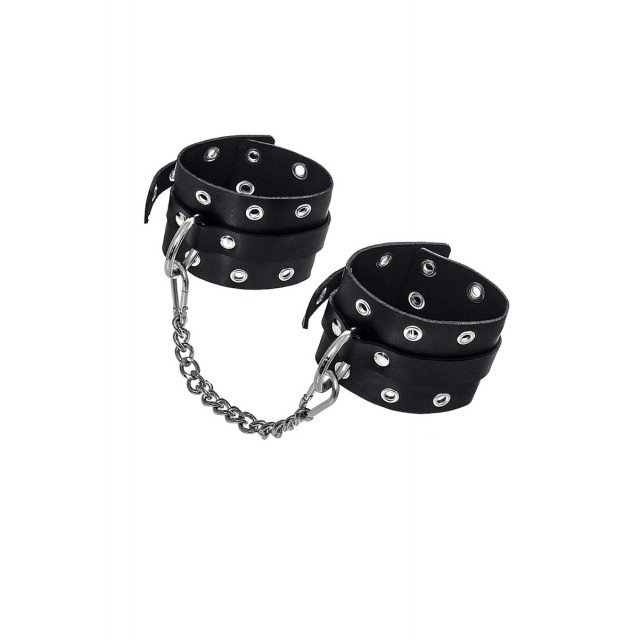 Эти однослойные кожаные оковы с люверсами могут стать стильным аксессуаром, а могут послужить вашим целям по своему прямому назначению. Частичное обездвиживание и невозможность двигать руками или ногами дают вам полную власть над партнером – взрослые игры для взрослых. Наличие двух колец и карабинов, соединенных между собой металлической цепочкой, позволяет использовать изделие как раздельно – аксессуар-манжеты, так и как оковы для фиксации. К широким металлическим кольцам также можно присоединить и другие аксессуары при помощи карабинов. Благодаря универсальному размеру оковы могут использоваться и мужчинами, и женщинами. Размер легко регулируется с помощью металлических пряжек, органично вписывающихся в общий стиль.