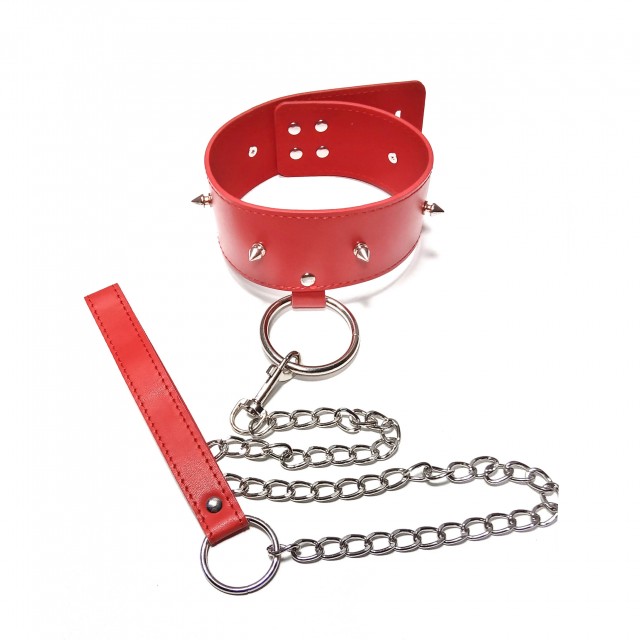 Ошейник c шипами и поводком LoA hard, Эко-кожа, Красный