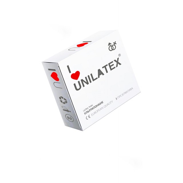 Презервативы ультратонкие Unilatex Ultra Thin (3012) из натурального латекса цилиндрической формы с резервуаром, телесного цвета, гладкой поверхностью, покрыты силиконовой смазкой.